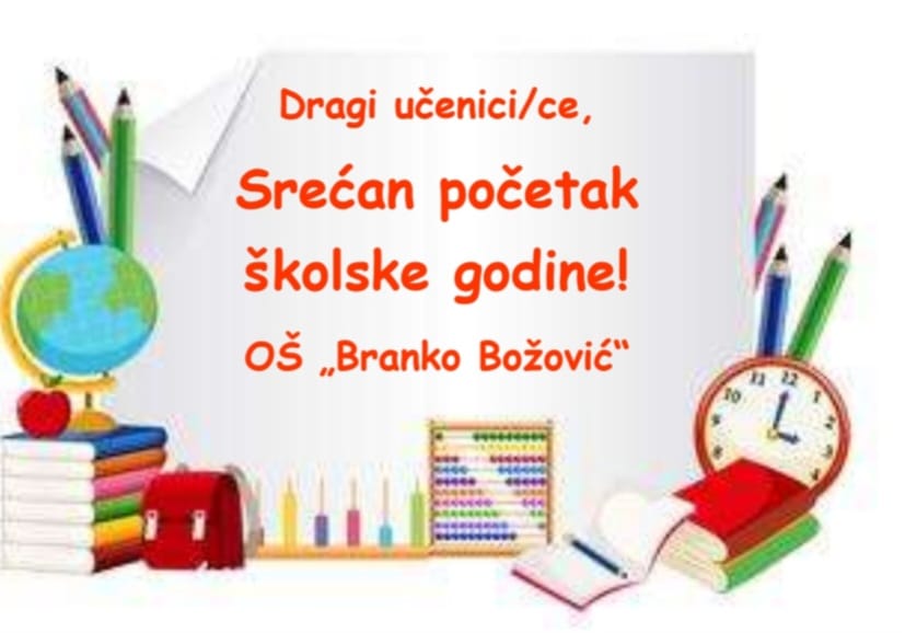 U ponedjeljak, 4.09.2023. počinje školska 2023/24.godina. Prvog dana će se držati jedan čas sa odjeljenjskim starješinama i to: I smjena (VI, VII, VIII, IX) u 7.30, II smjena (II, III, IV, V) u 12.30, Svečani prijem prvaka u 10h.