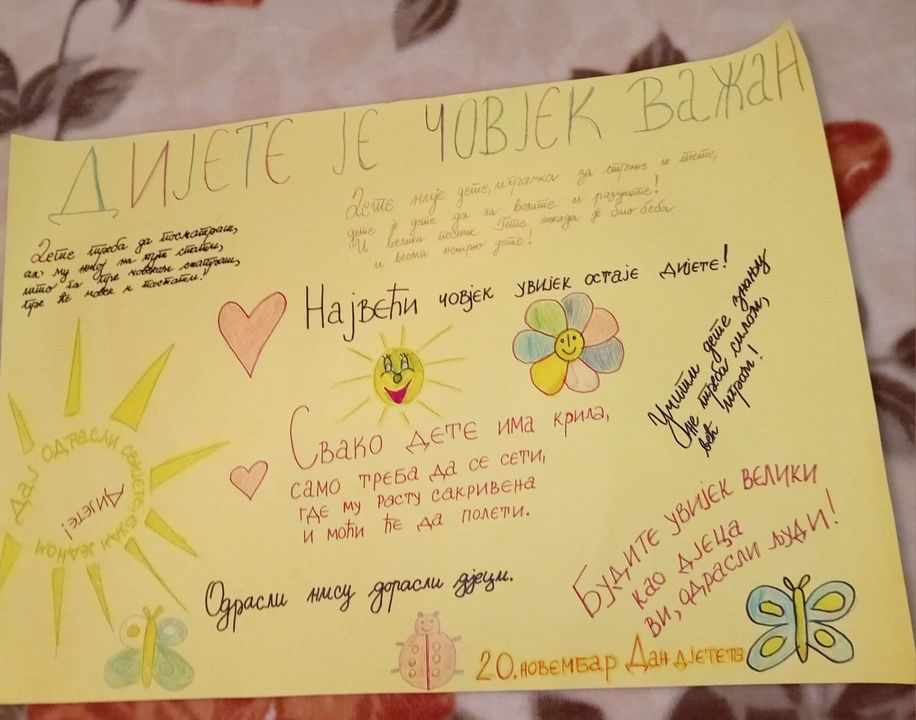 O dječijim pravima su govorili učenici/ce četvrtog razreda, učiteljice Tamare Nikolić i Gordane Klikovac. Nađa Radović nas je podsjetila na istorijat ovog datuma, a hor je prenio univerzalnu poruku izvođenjem pjesme ,,Nek’ svud’ ljubav sja”. Hor je pripremila nastavnica muzičke kulture Aleksandra Filipović.