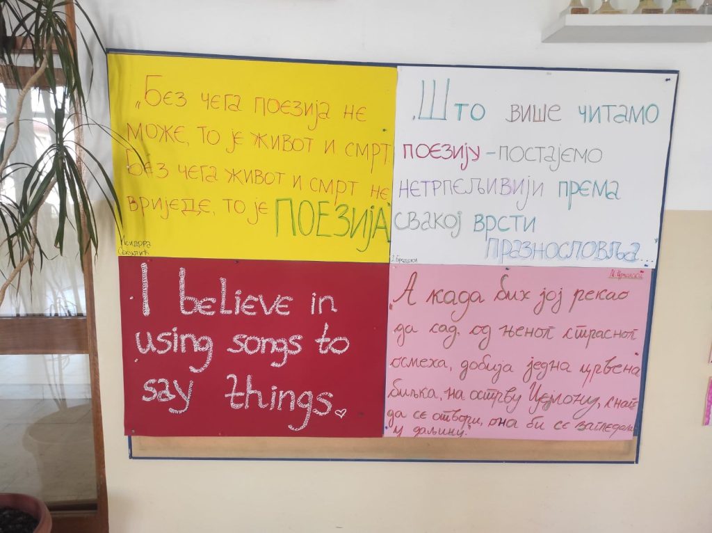 Učenici su upoznali i ljepotu poetike riječi i izraza čak i onih pjesnika koji nisu u okvirima školskog plana i programa, a vrlo su značajni u stvaranju najljepših stihova svjetske poezije.