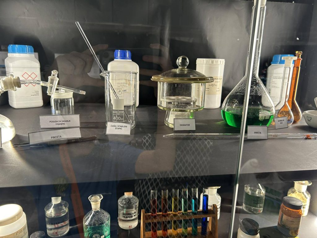 Učenici/ce su imali priliku da vide eksponate koji objašnjavaju kako je razvijan periodni sistem, kao i neke elemente koji se nalaze u zbirci fakulteta.