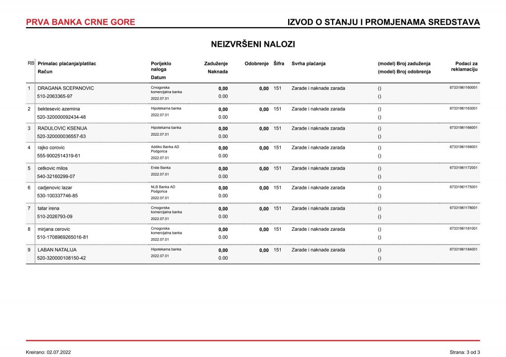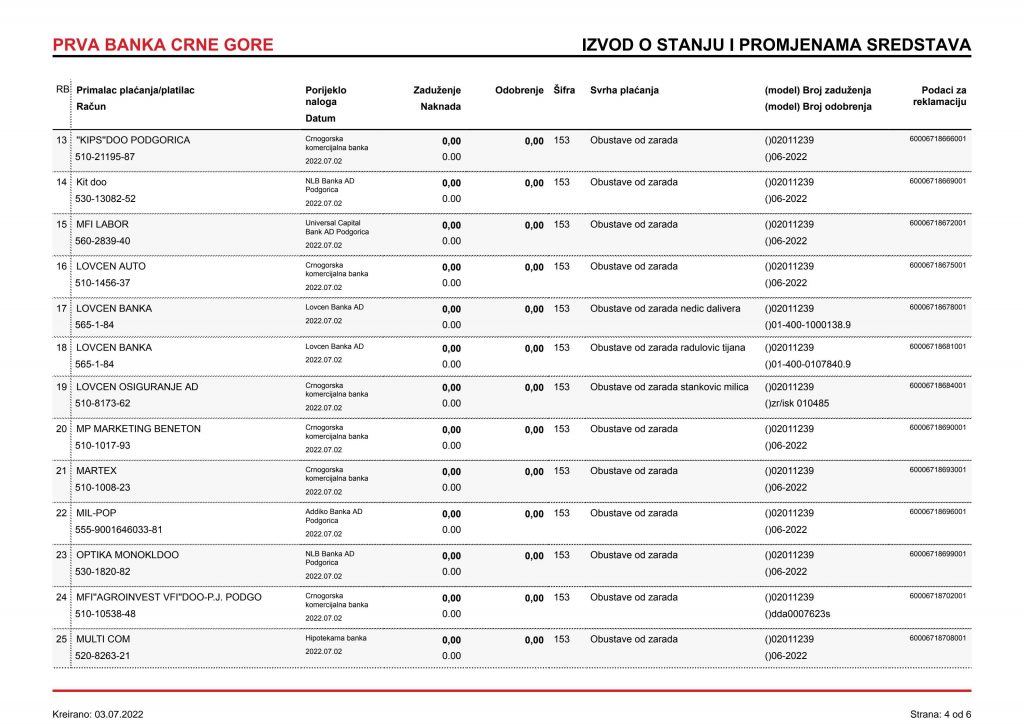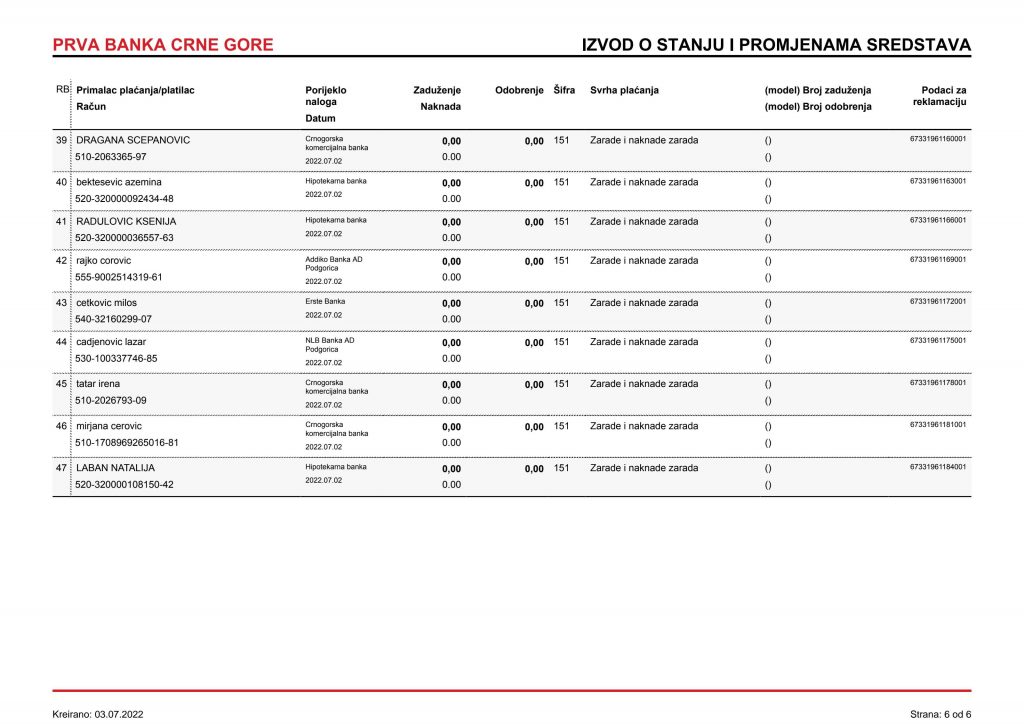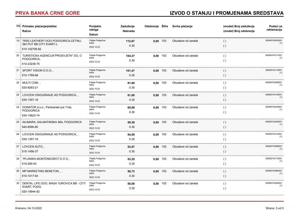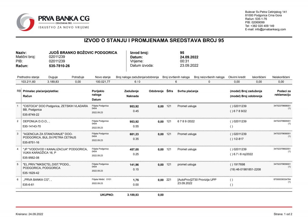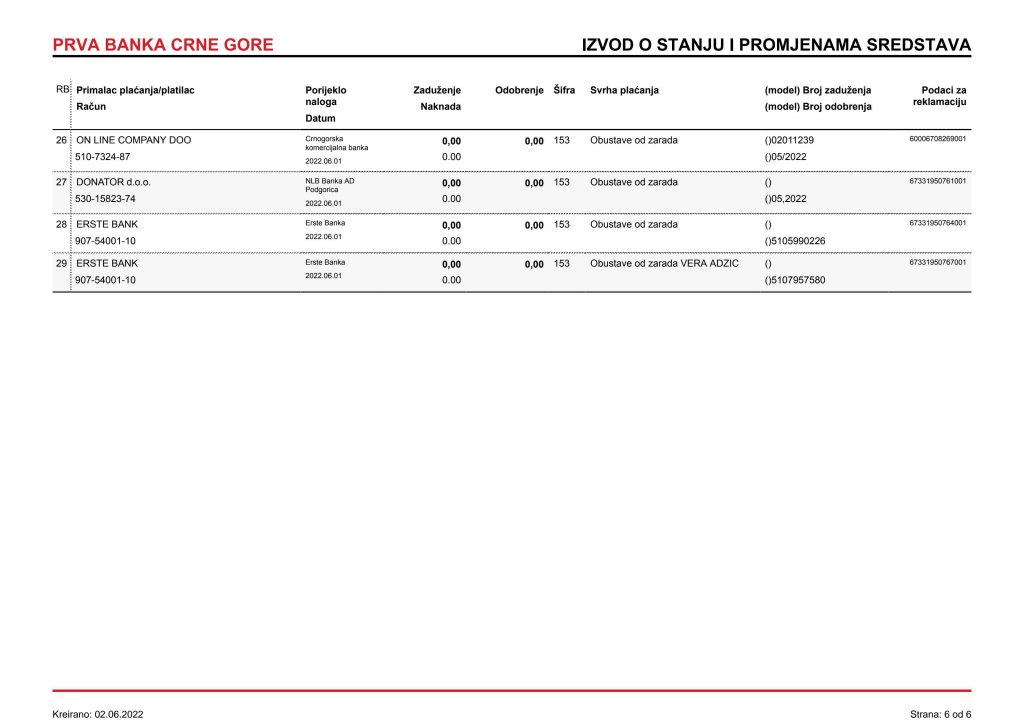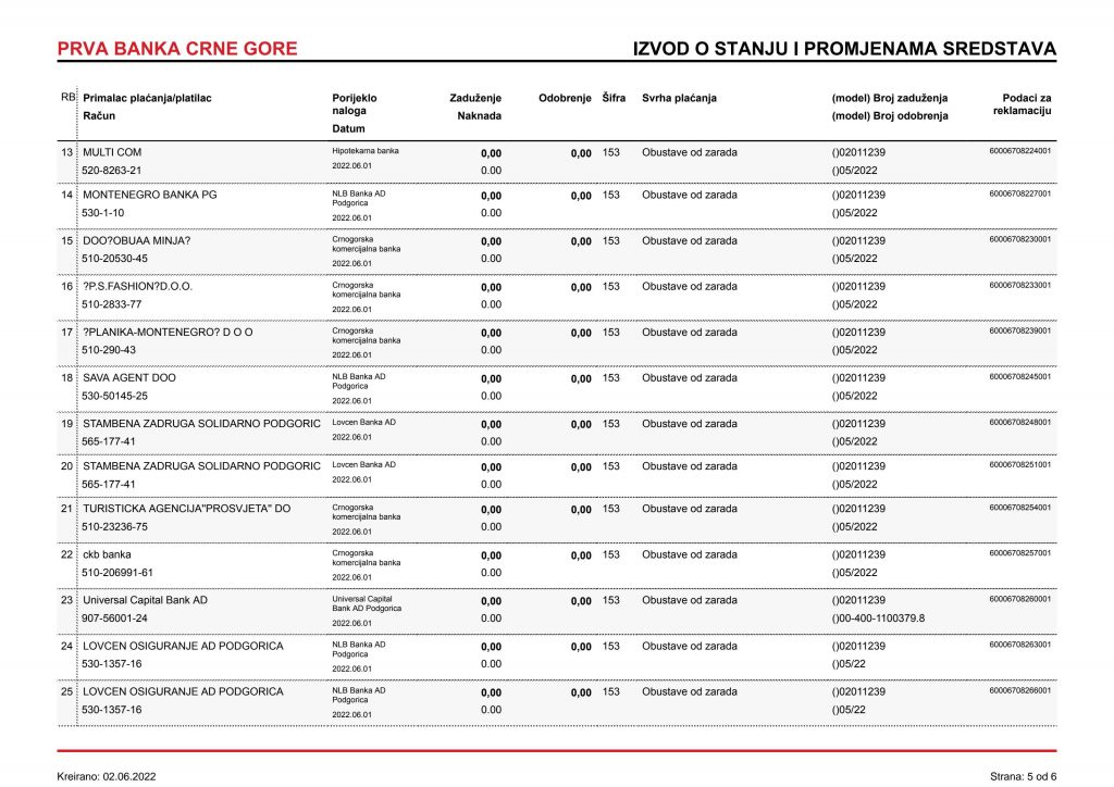 • Izvodi od 21. Aprila 2022.god.