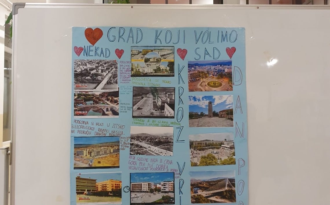 Učenici/ce odjeljenja IV-2 su sa učiteljicom Andrijanom Ugrenović na kreativan način obilježili 19.decembar – Dan oslobođenja Podgorice. Na panou su predstavili u slikama Podgoricu kroz vrijeme – GRAD KOJI VOLIMO, a od hamera su napravili znak “Podgorica”. Panoi su ukrasili naš hol.