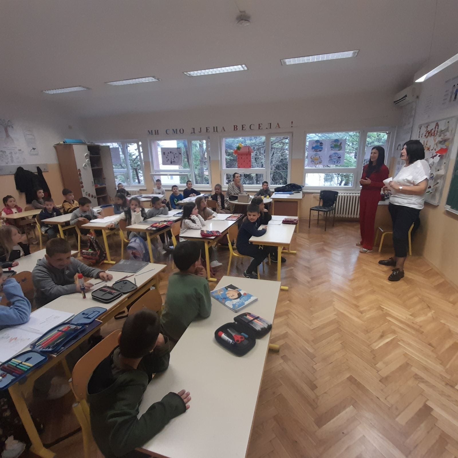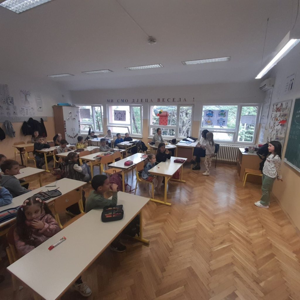 Djeca predškolske grupe Vaspitne jedinice ,,Mali princ” posjetila su našu školu i družila se s prvacima. Budući prvačići su upoznali ambijent i prostor u kome će boraviti i sticati nova znanja. Uživali su u druženju i zajedničkim aktivnostima.