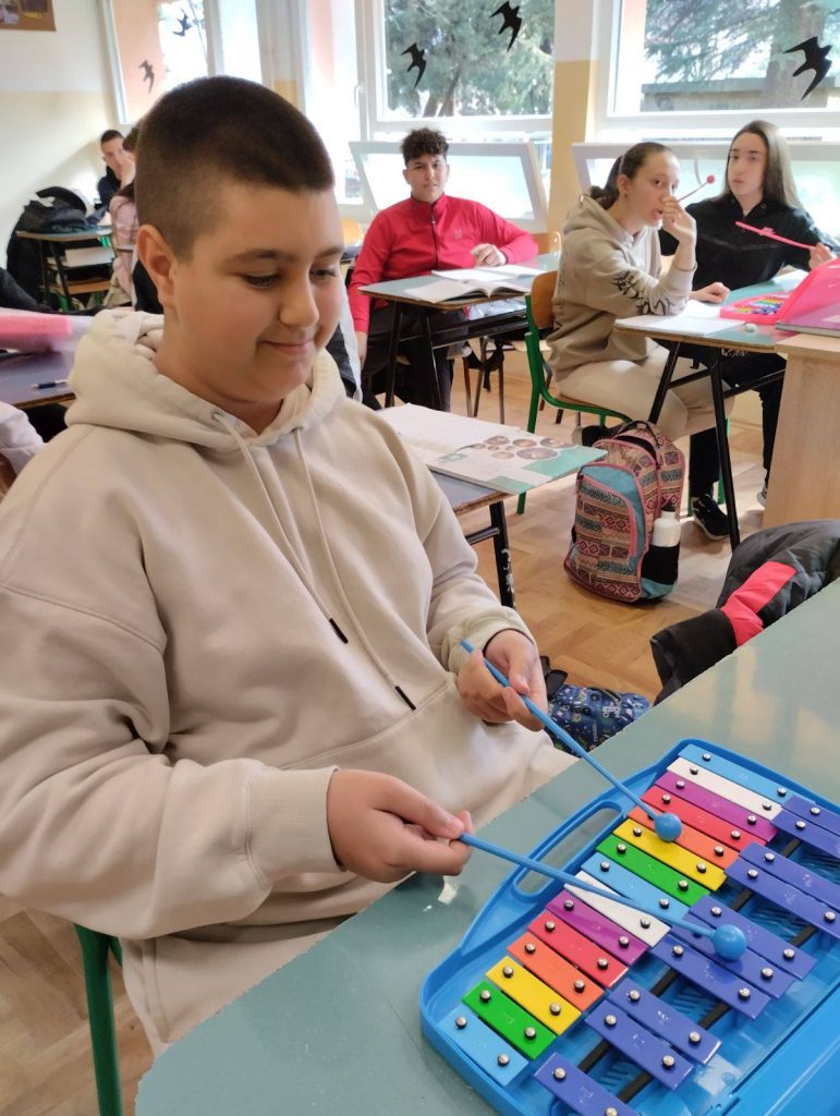 Učenici i učenice odjeljenja VIII-1, isprobali su nove metalofone i stvarali najljepše melodije.