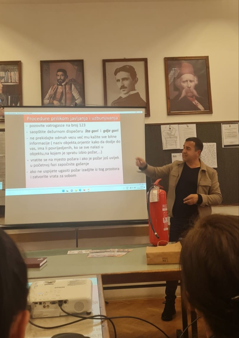 U našoj školi je za zaposlene i učenike petog razreda održano predavanje ,,Preventivne mjere u zaštiti od požara”.