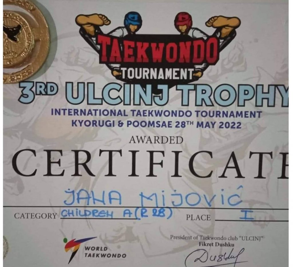 Jana Mijović, učenica odjeljenja III-1, osvojila je zlatnu medalju na Međunarodnom turniru ,,Ulcinj Trophy 2022″.